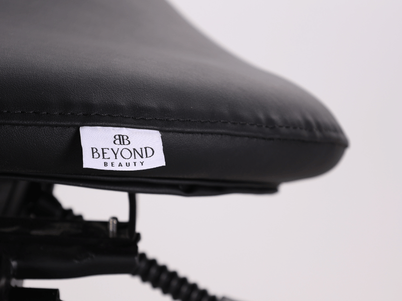 כיסא יופי מקצועי עם בסיס אלומיניום יציב, מבנה אוכף, פיקוד רגלי ויכולת כוונון גובה ל-14 ס"מ נוספים. מושלם לשימוש למקצוענים בתחום הביוטי והרפואה.