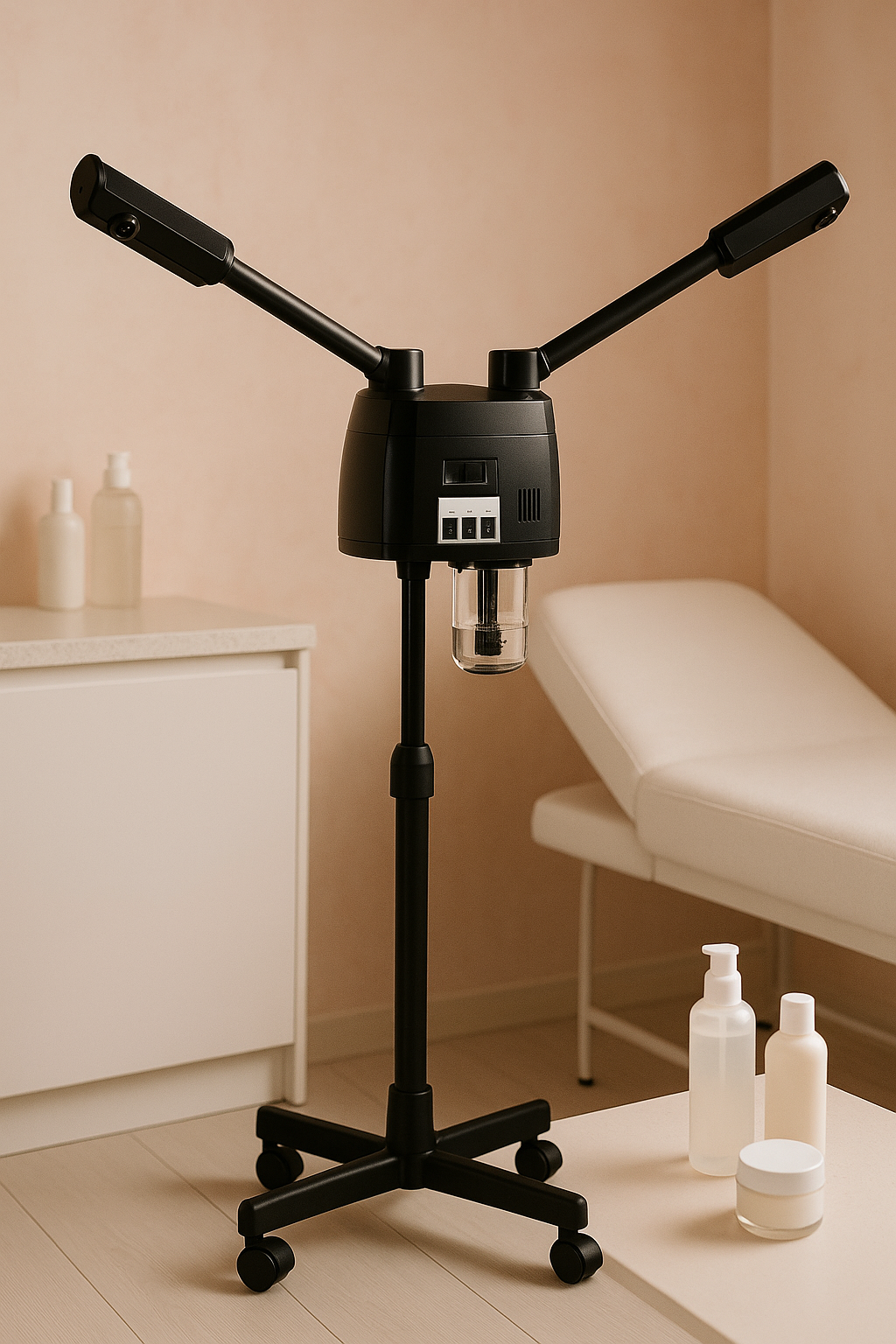 מכשיר אדים מתקדם לקוסמטיקאיות, המשלב אדים חמים וקרים יחד עם פיזור ננו-ערפל –
