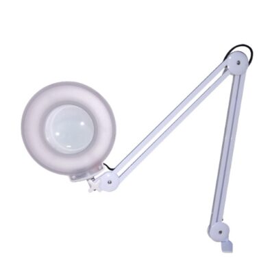 מנורת הגדלה מקצועית עם תאורת LED עוצמתית, אידיאלית למניקוריסטיות. המנורה מצוידת בעדשה אופטית איכותית עם הגדלה של פי X3.5, בקוטר של 120 מ"מ, המספקת הגדלה ברורה ומדויקת לצורך עבודה מדויקת על פרטי הציפורן. התאורה מבוססת על נורות LED קרות בטמפרטורה של 6000-6500K, שמבטיחות ראייה צלולה, טבעית וללא עיוותים צבעוניים, מה שמסייע בעבודות כמו מניקור, פדיקור ועיצוב ציפורניים.