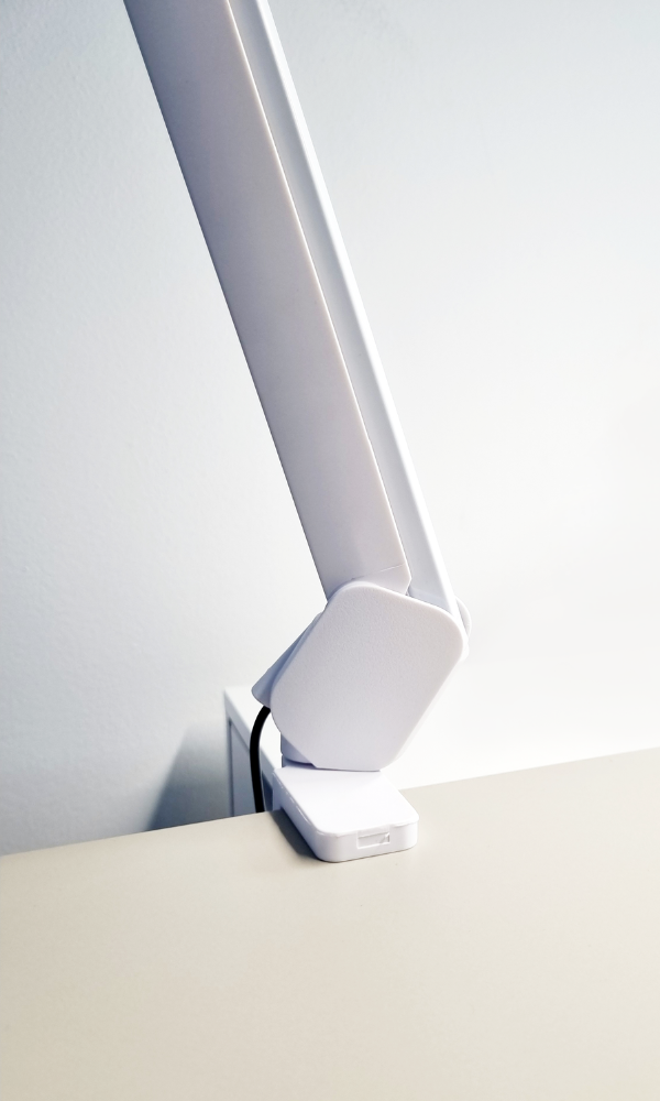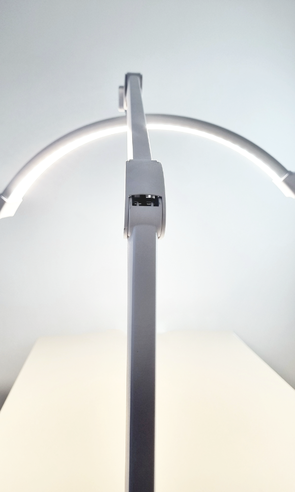 - זרוע מתכווננת: זרוע גמישה וניתנת לכוונון אשר נותנת זווית תאורה רחבה של 180°, שתספק לך אור אחיד וממוקד לאורך כל אזור העבודה.