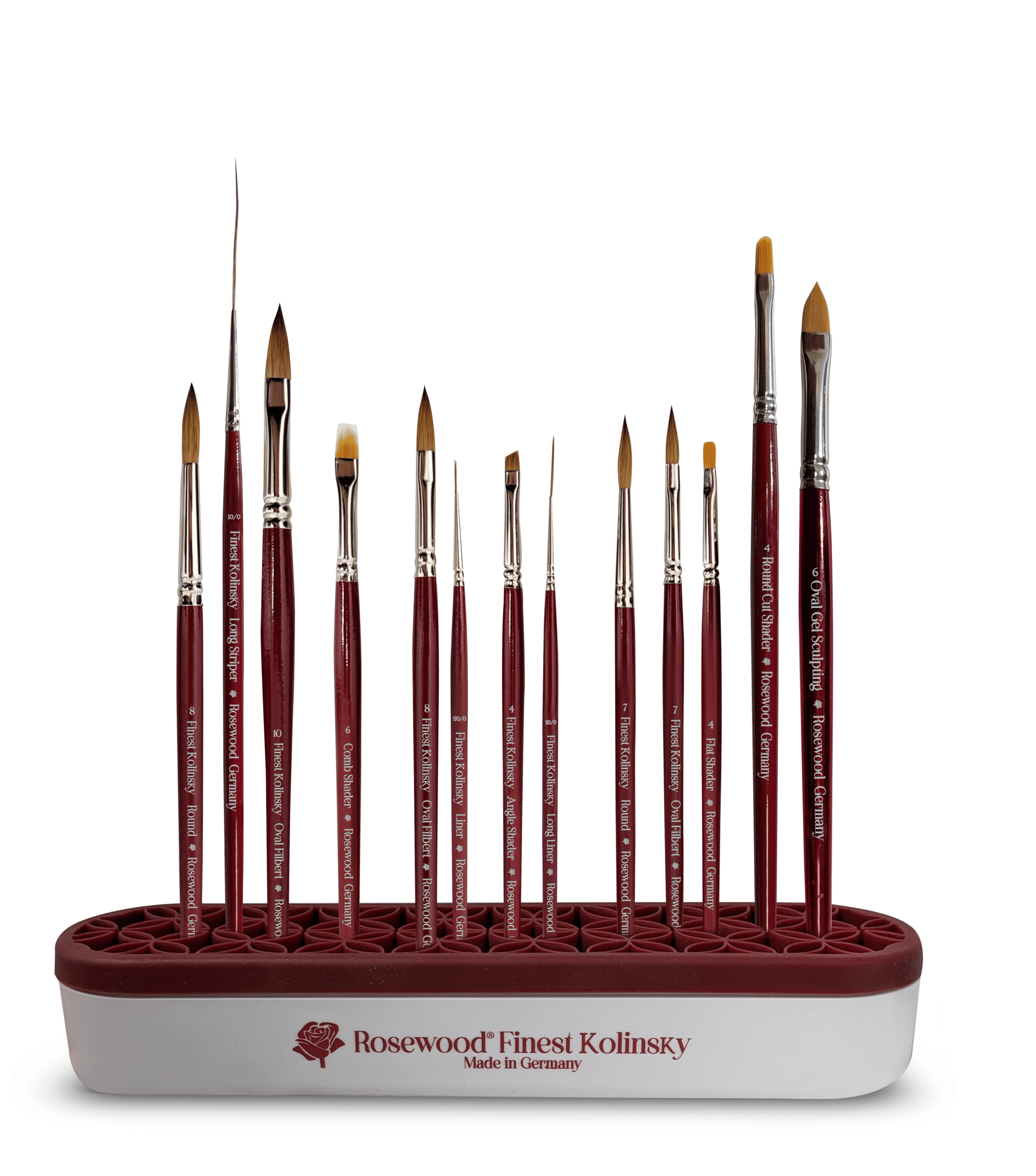• כלי עבודה ואביזרים נלווים לציפורניים – כמו מכחולי הפרימיום הטובים בעולם, תוצרת גרמניה, ROSEWOOD