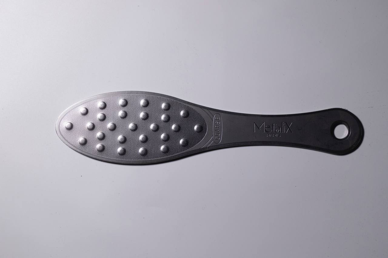 - עיצוב דו-צדדי: צד גס להסרת עור קשה, סדוק ויבש, וצד עדין לליטוש והחלקת העור הנותר.