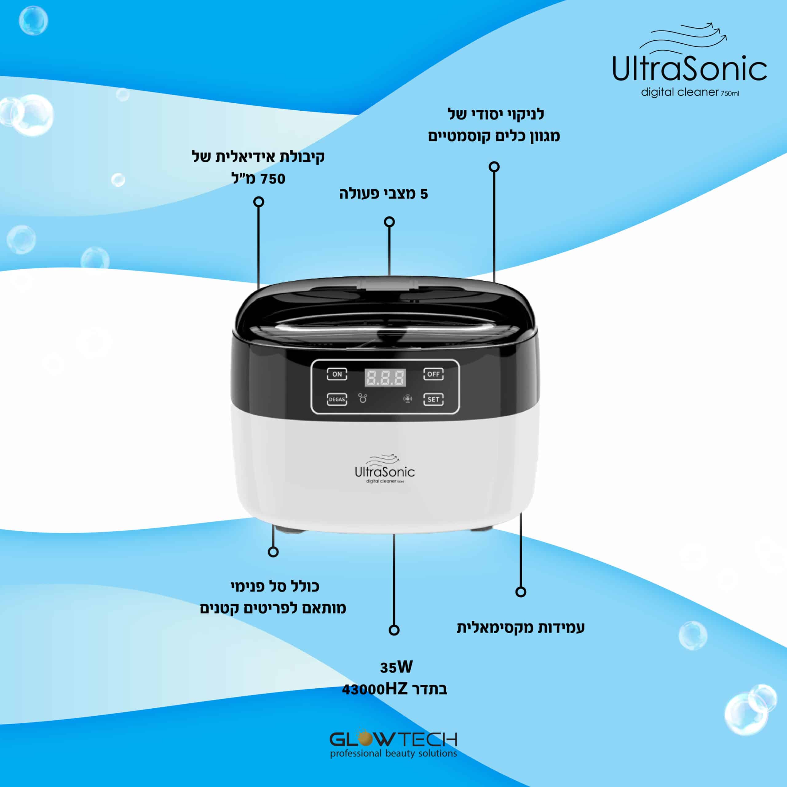 🔹 35 וואט בתדר 43,000HZ – טכנולוגיית גל קור ורעידות לניקוי אפקטיבי ויסודי.