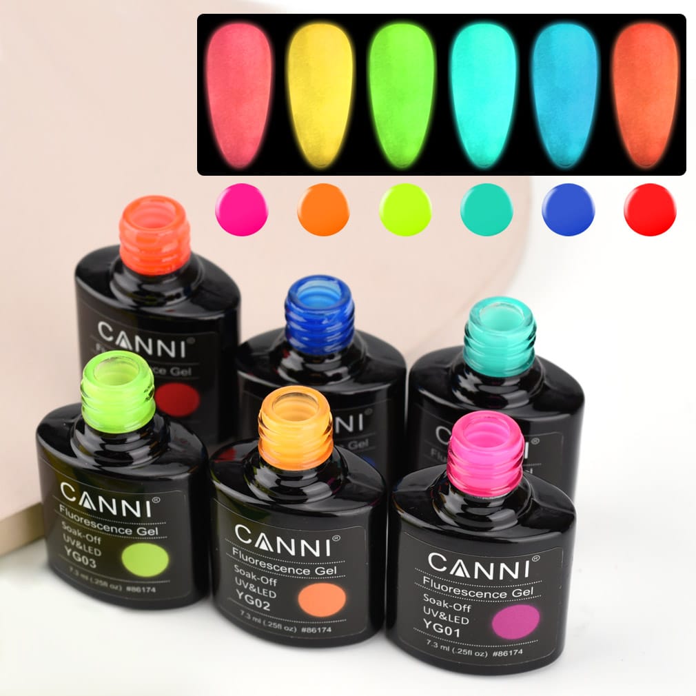 לק ג'ל זוהר בחושך – Canni Fluorescence series 6 pcs set מארז שישיה 7.3 מ"ל