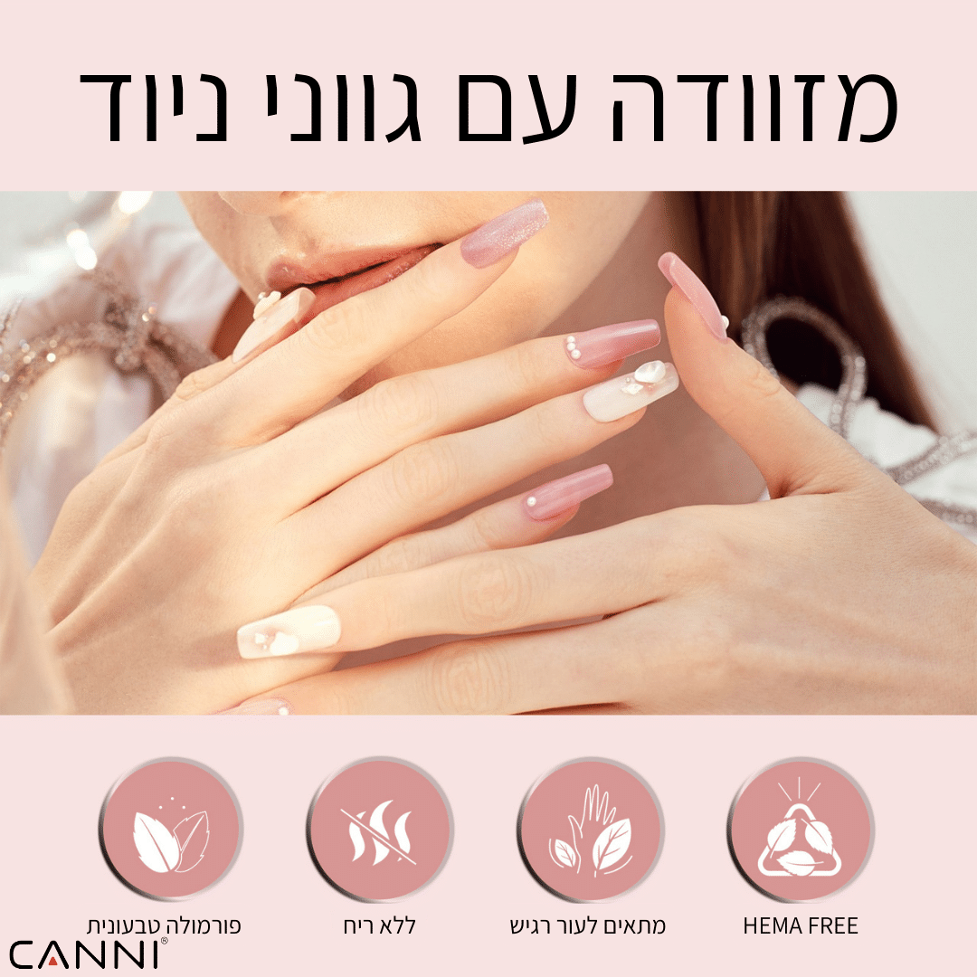 *הפורמולה של CANNI אינה מכילה אקריל חומצי, אלא חומרים אורגניים ובריאים לציפורניים