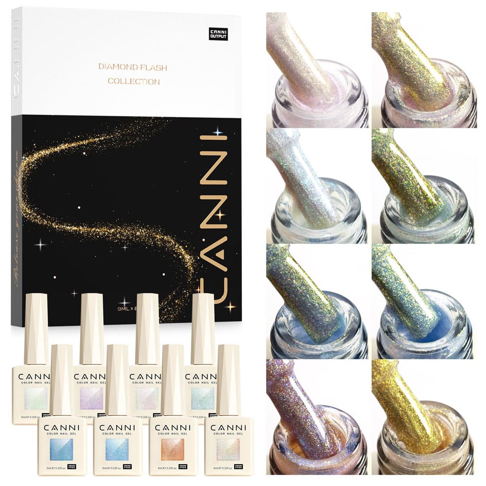 🩷 חדש! I Aurora Glitter CANNI דיימונד פלאש– סט 8 יחידות 9 מ"ל